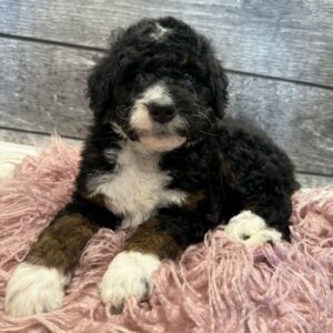 Bernedoodles inherit coat characteristics from both their Bernese Mountain Dog and Poo